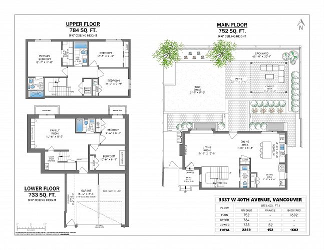 SPECTACULAR, incredibly-rare BACK half-duplex in prestigious DUNBAR w/ almost 2,300 sq ft of beautifully finished living space & over 1700 sq ft of perfectly manicured, sun-drenched, private BACKYARD space. The perfect plan w/ large living & dining, upstairs 3 bed/2bath & downstairs a family room, full bath, 2 beds & plumbed for kitchen (easily converted to suite). Chef's kitchen w/ high end appliances, Wolf gas range & quartz counters. High-end finishes throughout, engineered wood floors, arch. speakers, custom millwork, radiant in-floor heating & AIR-CONDITIONING. Stunning curb appeal & remainder of 2-5-10 warranty. Central location within Kerrisdale Elementary, Point Grey Secondary & Sir Winston Churchill school catchment. Attached garage.
