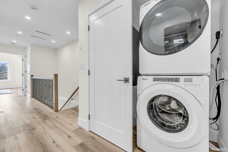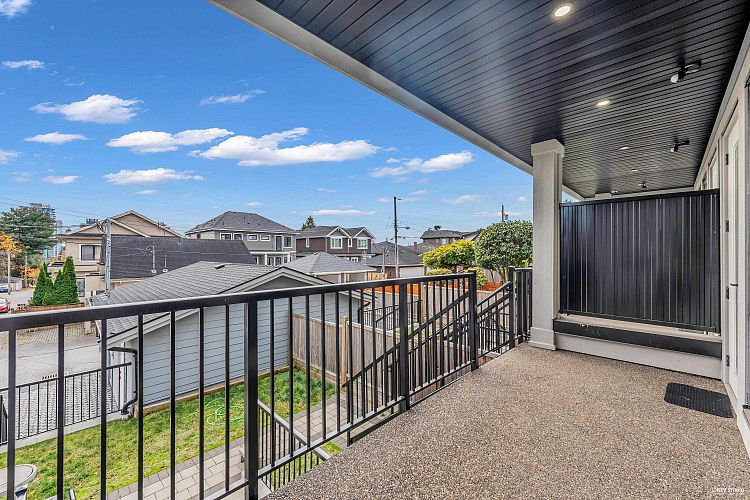 Impeccably built and almost new side-by-side duplex in the heart of Marpole! This elegant residence offers nearly 2,000 sq.ft. of bright, thoughtfully designed living space featuring 3 generous bedrooms upstairs and a 2-bedroom legal suite below with separate electrical meters and hot water tanks. Quality craftsmanship throughout with engineered hardwood floors, high ceilings, and air conditioning for year-round comfort. A large detached garage plus one open parking space provide convenience and flexibility. Ideally located near top schools, parks, and just a short walk to Marine Gateway SkyTrain, shops, and restaurants—where superior quality meets exceptional lifestyle! Equipped with 200-amp electrical service and two Level-2 outlets, making it ideal for EV charging or future upgrades.