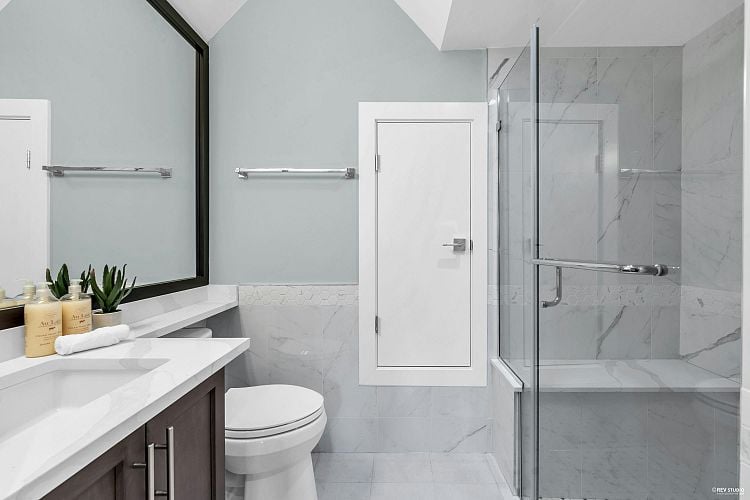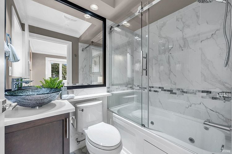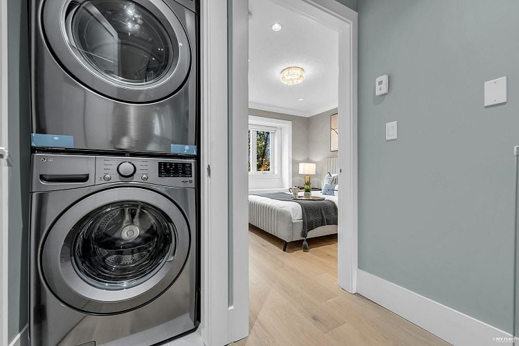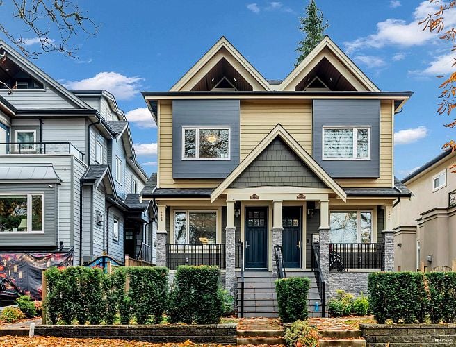$371K BELOW BC ASSMT!! Stunning half side by side duplex, sitting in the Vancouver's prestigious S Granville neighbourhood. This 5 bed 5 bath modern home offers exceptional design and functionality, engineered hardwood floors, gas-fired radiant in-floor heating. Open-concept kitchen is equipped with S/S appliances, a gas stovetop, and quartz countertops, perfect for both everyday living and entertaining. Craftsmanship residence features HRV, security cameras & built in vacuum. Covered BBQ porch, stone exterior, and private back yard brick paved patio. Walk to Magee Secondary, Maple Grove Elementary, community centre, library, shops & restaurants.10 min to YVR,UBC & Langara.BONUS:legal 1 bed suite w/separate entrance,EV charge & 145 sqft crawl space for storage.OH SAT/SUN Nov 15/16 @2-4pm.
