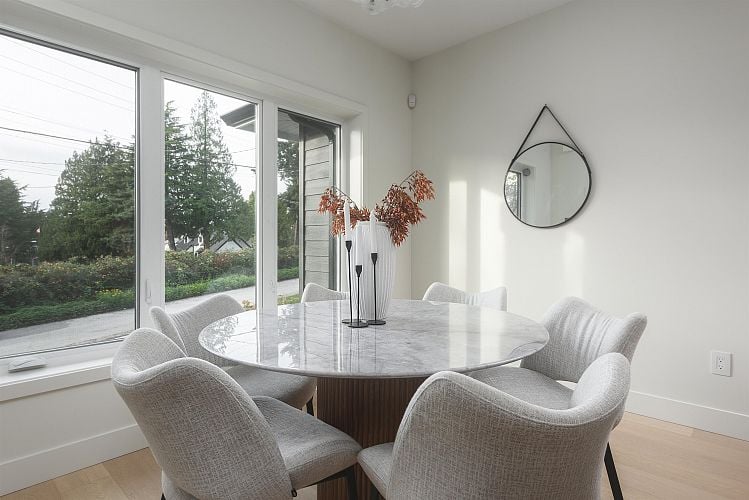 Welcome to The Greenway Collection – a rare side-by-side duplex on a 56 foot wide lot, fronting the Arbutus Greenway. This 4 bed, 3.5 bath home features an open main floor, sleek kitchen with premium integrated appliances, dual heating with heat pump and radiant floor heat for year round comfort + A/C, private fenced back yard with BBQ hook up, and lots of storage. Ideal for young professionals looking to start a family or downsizers looking for a low-maintenance lifestyle with NO STRATA FEES. Flexible bedrooms work perfectly as kids’ rooms, guest rooms or office. An attached heated garage with frosted glass doors for all your ideas. Separate basement entry allows many options for a nanny suite and Airbnb potential with close proximity to YVR and UBC. Steps to parks, cafes and top schools.