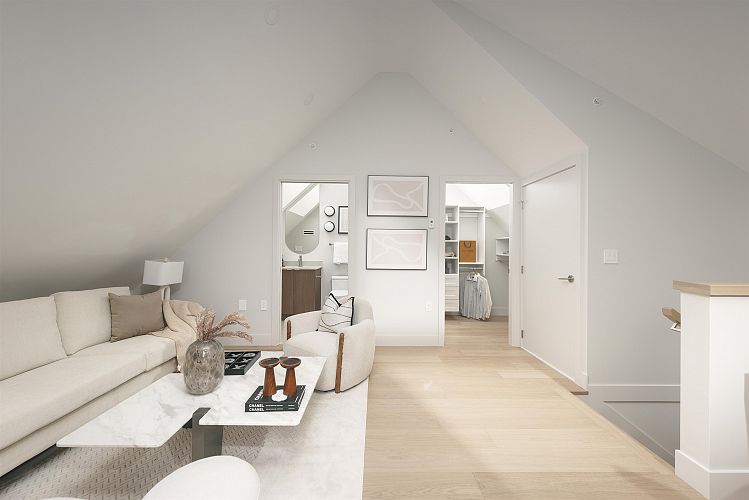 Proudly built by Medallion Homes and designed by VictorEric- Georgie Award Winning, this north-facing back-unit Kitsilano duplex offers coastal luxury steps from Kits Beach, parks, cafés, and top Westside schools. With 3 bedrooms and 3.5 baths, the home blends smart design with premium finishes. The gourmet kitchen features Miele and Fulgor Milano appliances, custom cabinetry, and a layout ideal for daily living and entertaining. Enjoy seamless indoor-outdoor flow with multiple patios, including a private all-season patio with built-in BBQ, heaters. The top-floor bedroom provides a tranquil retreat with its own deck and spa-style ensuite. Full crawlspace storage and a detached garage with epoxy flooring add convenience to this exceptional residence.