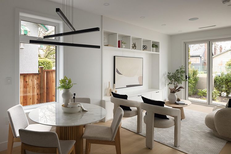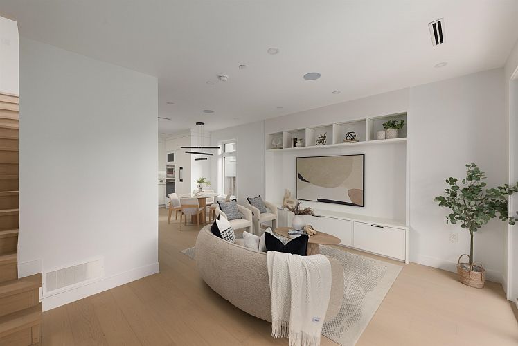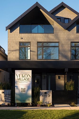 Discover Yukon Village, a brand-new sanctuary perfectly tailored for growing families & sophisticated downsizers in the heart of Cambie Village. This refined 4-bedroom, 3.5-bath home defines modern luxury with an open-concept layout & seamless indoor-outdoor flow via elegant bi-fold doors. Enjoy sun-drenched afternoons in your private, south-facing 17’8 x 16’ front yard. The chef’s kitchen shines with a waterfall island & premium Fisher & Paykel appliances. Functionality meets style with 3 bedrooms on one level & a vaulted top floor (522 sqft) that serves as a primary bedroom or family room with a walkout covered patio. High-end features include AC, radiant floor heating, a crawlspace, & a private covered garage. Walk to shops, skytrain, & numerous parks. Edith Cavell & Hamber catchment