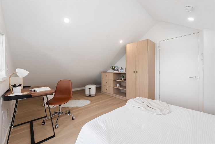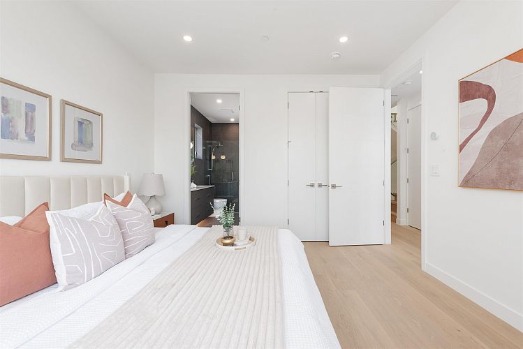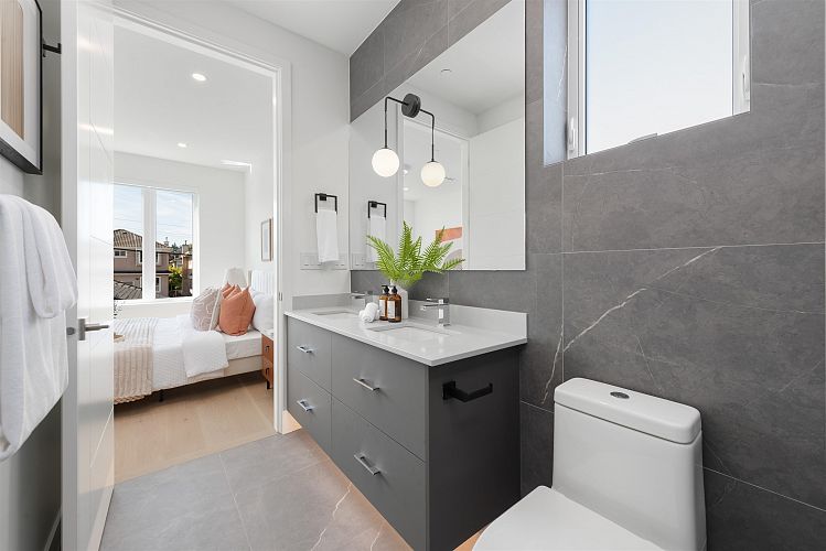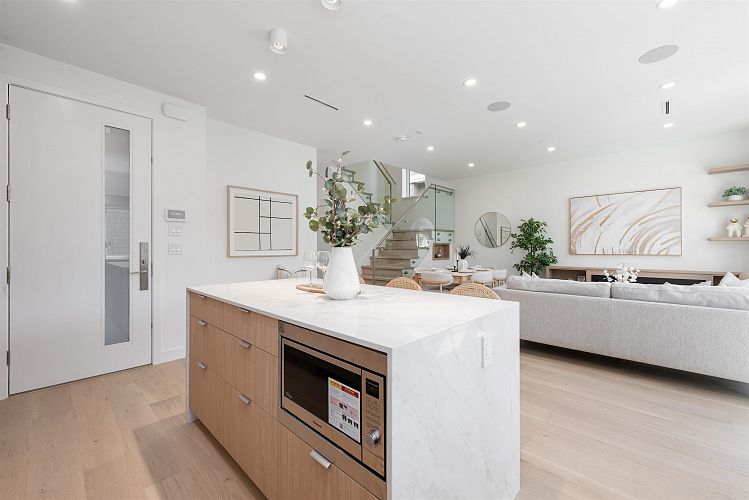 Nestled on a tranquil, tree-lined street in Arbutus-one of Vancouver's most prestigious neighborhoods. This newly built 1695sf duplex offers the perfect blend of luxury&convenience. Just moments from top public&private schools, UBC, cafés, restaurants, parks, shops&beaches. Open concept layout w/9-foot ceilings, wide-plank light oak flooring&oversized windows that flood the space w/natural light. The gourmet kitchen is a chef's dream, featuring a waterfall island, quartz countertops, extensive cabinetry&premium stainless-steel appliances. Upstairs, three spacious bedrooms, each w/its own ensuite, plus a den. Features include in-floor radiant heating with programable “Nest” thermostats, AC/heat pump, security system and a large private back yard and crawlspace.Open house 2pm-4pm Sat&Sun