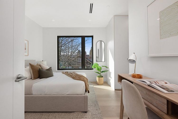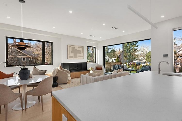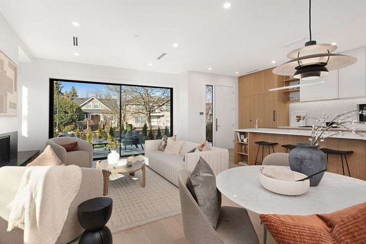 Architecturally striking 3Bed/3.5Bath contemporary duplex by Rdon Construction on a prime 36’ x 122’ Cambie corner lot. Designed with intention and built beyond standard spec: metal roof, aluminum detailing, triple-glazed Cortizo sliding doors, Hardie siding, radiant in-floor heating and A/C. Private landscaped yard and beautiful mountain views enhance the detached-home feel. Interiors showcase white oak floors, marble fireplace, skylights and a fully integrated kitchen. Spacious ensuited bedrooms and remarkable craftsmanship throughout highlights exceptional quality for discerning buyers. OPEN HOUSES: SAT Feb 21st & SUN Feb 22nd from 2-4 PM.