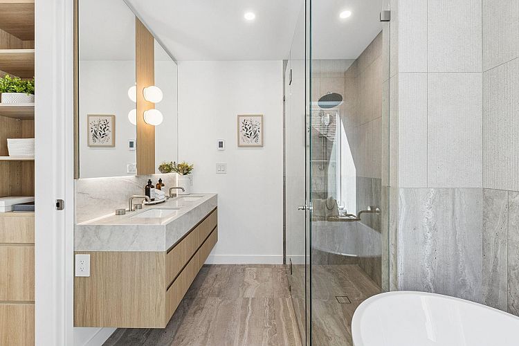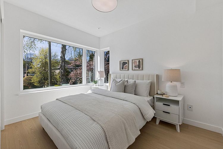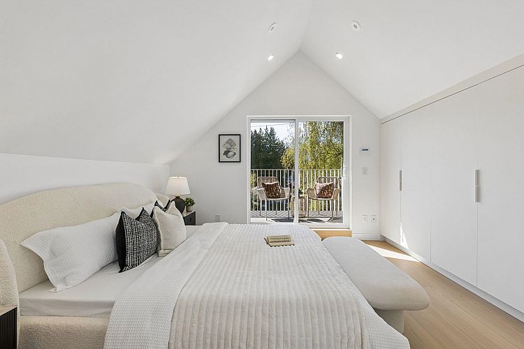 Newly completed front/back duplex in Kerrisdale by Trillium Homes, thoughtfully designed to live like a private residence. This 3 bedroom home offers a functional layout with dual primary bedrooms, generous living space, and seamless indoor outdoor connection through large sliding patio doors. Private yard and a quiet upper level balcony create multiple outdoor retreats. Interior features include a chef’s kitchen with Wolf appliances, custom millwork, marble fireplace, and a spacious second floor primary suite with walk in closet and 5 piece ensuite. Interior design by SHIFT Interiors and architecture by Architrix. Located on a quiet tree lined street just steps to Kerrisdale Village, parks, and top schools. Includes 2-5-10 Home Warranty. Front and back residences available, please inquire