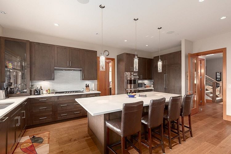 A rare offering directly facing Balaclava Park, this architecturally crafted West Coast modern residence blends natural elegance w/exceptional functionality. Nearly 3,850 sqft across 3 lvls, showcasing rich wood accents, coffered ceilings w/exposed beams, & refined detailing throughout. The main lvl is perfect for entertaining, w/a chef’s kitchen, formal dining, and seamless indoor-outdoor flow to a covered deck. Upstairs offers 3 bedrooms + office space incl. a vaulted primary suite w/park views & spa-inspired ensuite w/soaker tub, expansive walk-in shower, & double sinks. The lower lvl incls. a rec room, wine wall, wet bar, 2 bedrooms & a walk-out patio w/ hot tub. Enjoy a sun-drenched s-facing backyard w/putting green, lush gardens, and detached garage. A/C & more.