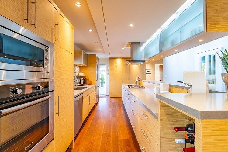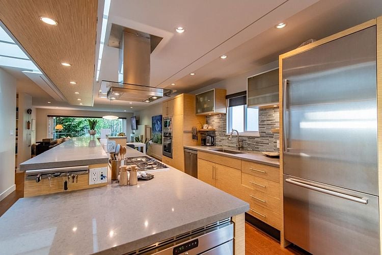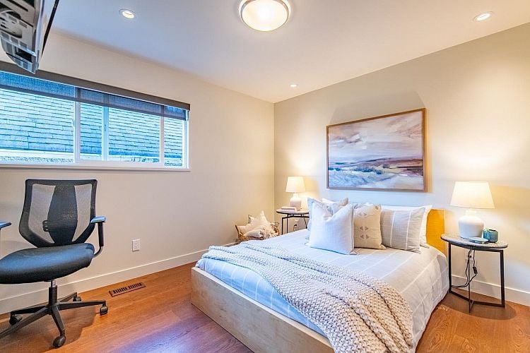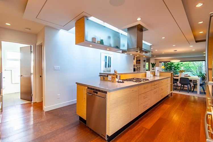 Beautifully updated Vancouver Special w/ 2 Brs, 2 baths & den up and a s/c 2br, 1 bath accom. down sits on a quiet, tree-lined street & offers incredible flexibility for families & investors alike. Upstairs underwent a major redo in 2014 resulting in a contemporary open plan kitchen w/ bamboo cabinets, quartz counters, raised eating bar, & SS appliances inc. wall oven & gas cooktop. Kit opens to the DR & LR w/ engineered oak plank flooring, gas fireplace & folding patio doors to deck & leafy green front yard. The kitchen back door opens to a 250 s.f. covered south deck overlooking a sunny back garden & lane access to C-Port & garage. The ground level 2 Br w/ sep. entrance is tenanted but could also be ideal for guests or in-laws. Walk to Dunbar CC, shops, restaurants & transit to UBC & YVR