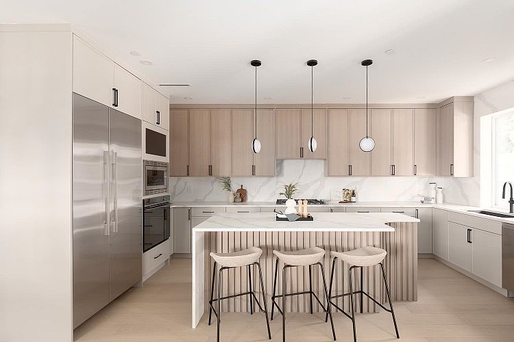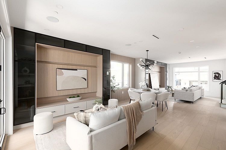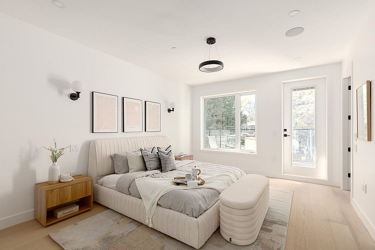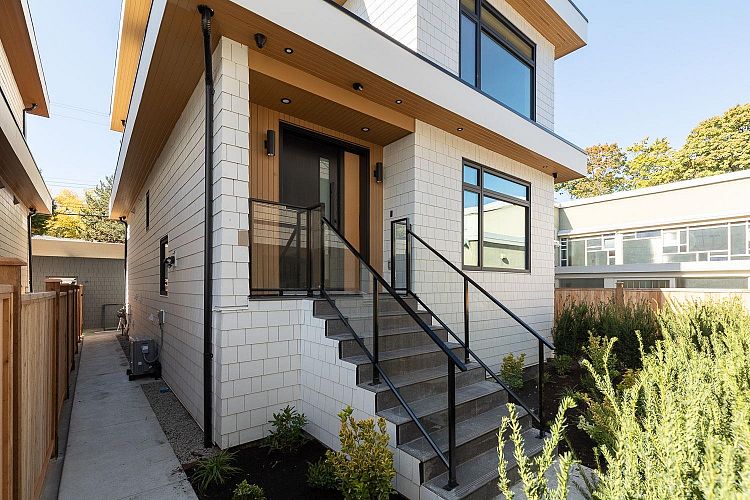 This fully detached carriage home offers over 2,700sf across three spacious levels with no shared walls, providing true single-family living in South Granville. The main floor boasts over 900sf with full-sized living, dining, and family rooms: ideal for entertaining or everyday life. A large kitchen anchors the space with access to the rear yard deck. Upstairs are three large bedrooms, including a massive primary with walk-in closet and a luxe 5-piece ensuite. The lower level is roughed in for a 2-bedroom suite or can be enjoyed as additional living space. Private 1-car garage included. Thoughtful layout and generous proportions make this home perfect for families or those needing room to grow. Radiant heat, A/C and located near top schools, parks, shops, restaurants, and transit.