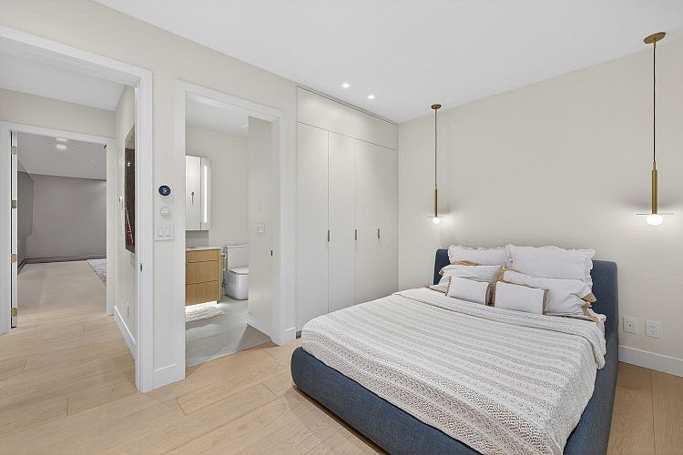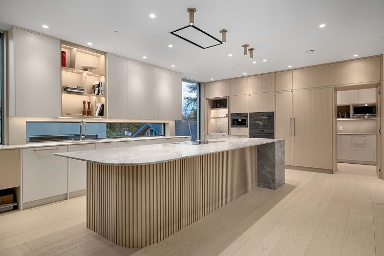 A newly completed, nearly 4000 sqft architectural modern residence located N of 4th Ave & just steps from Locarno. Designed by Lamoureux Architects w/interiors by Studio AKC, this home offers a dramatic double-height reception featuring a statement Bocci chandelier of hand-blown glass, clean architectural lines, warm materials, & sculptural metal staircase leading to a rooftop terrace w/views of N. Shore mtns & English Bay. Chef’s kitchen incl. sculptural island, Miele appliances, hidden pantry, & 2nd wet kitchen. Outdoor living incl. sunny front Zen garden & private large rear entertaining area w/outdoor kitchen & dining. Rear entry mudrm w/storage & dog wash. 4-beds, incl. primary suite w/spa-inspired ensuite & oversized walk-in-closet. Rec lvl w/bar, glass wine room & home theatre.