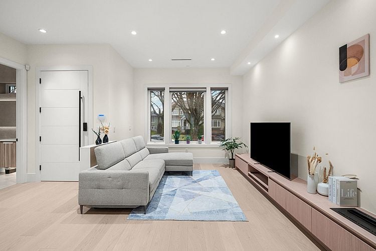 Luxury custom-built home by Enrich Developer located in the heart of Marpole. This 2-yr-old,3-level residence offers over 3,500 sq ft of thoughtfully designed living space with 7 bedrm and 8 bathrms. The main home features 3 spacious ensuite bedrms upstairs, including 2 bedrms w/ beautiful views, providing both comfort and privacy. Enjoy excellent income potential with a 1-bed legal suite and a 2-bed laneway house, ideal for extended family or mortgage helper. High-quality finishes throughout include premium appliances, quartz countertops, custom millwork, AC, and home automation for year-round comfort. Conveniently located within the David Lloyd George Elementary and Sir Winston Churchill Secondary school catchments, just 3 minutes away. Open House: Jan 31 (Sat) & Feb 1 (Sun), 2–4 PM!