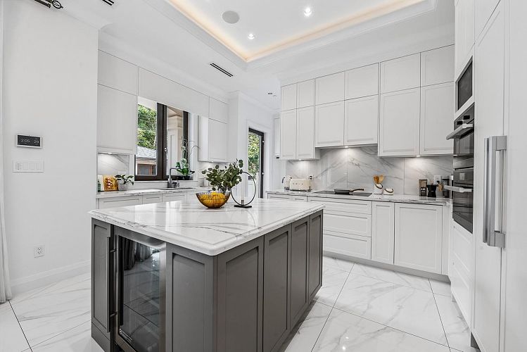 Exquisite custom-built residence in sought-after Kerrisdale, set on a serene, tree-lined street on a level, south-facing 7,920 sq ft lot. This luxurious home offers 6 beds & 7 bathrooms, showcasing exceptional craftsmanship and refined finishes throughout.The thoughtfully designed layout is both highly functional and rich in architectural detail. The upper level features 4 spacious bedrooms, each with its own ensuite. The main floor includes a formal dining room, wok kitchen, elegant living room, and a bright, inviting family room.The lower level is ideal for recreation and entertaining, featuring a generous recreation room, wine cellar, and dedicated media room. A superb combination of style, comfort, and entertainment spaces in a premier neighbourhood, within walking distance to Crofton.
