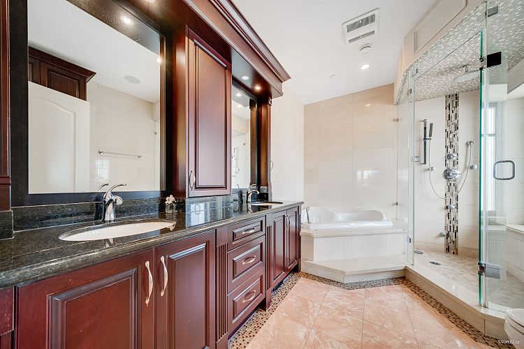 An exquisite custom-built mansion in the heart of prestigious South Cambie. Nestled on a quiet street, this 4,491 sqft residence is a showcase of refined design and modern comfort. Offering crown mouldings and coffered ceilings, grand spiral staircase and custom cabinetry, every element reflects superior craftsmanship. The chef’s kitchen is loaded with stainless steel appliances, granite countertops, radiant heating, air conditioning, and HRV. Upstairs, 4 expansive en-suite bedrooms create an ideal retreat for family living. The lower level features a fully equipped media room with wet bar & wine cooler. A sauna/steam room, a guest room, & a self-contained 4-bedroom suite. Near Churchill Secondary (IB program), Laurier Elementary, Langara College, Canada Line and UBC bus & Shopping.