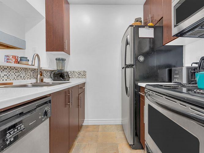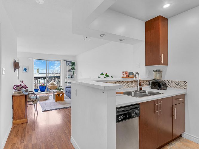 Excellent value for this top-floor studio nestled in central Kitsilano. This bright, renovated home offers a functional layout featuring a sleeping nook and ample storage. Add a sliding partition for seclusion or maintain the open flow to appreciate mountain vistas from your windows. This space fits a dining set or offers casual seating at the kitchen’s breakfast bar. Relax on the expansive balcony overlooking vibrant spring blossoms along this lush, quiet street. The suite remains breezy in summer, includes fiber-optic wiring, one parking stall, a massive locker, and access to secure bike storage. Steps from Kits Beach, Arbutus Greenway, local eateries, the future Skytrain, and West 4th shopping. This prime location is truly unbeatable! Pets welcome!