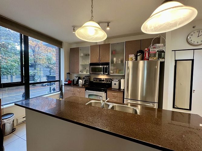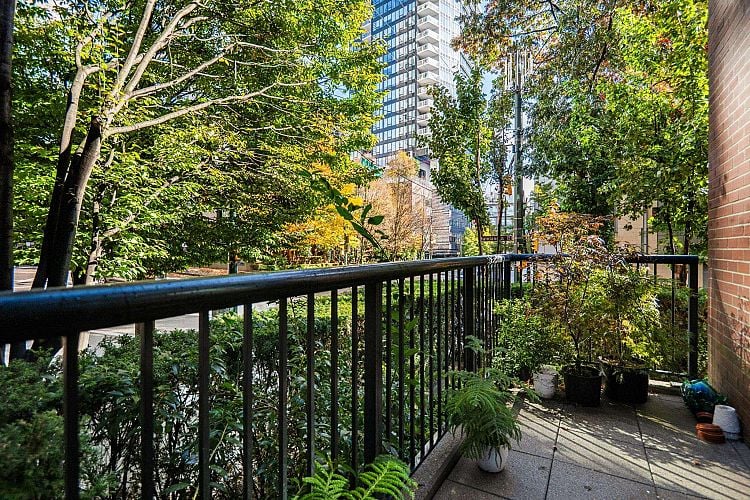 BRIGHT YALETOWN TOWNHOUSE! CORNER UNIT with TONS OF BIG WINDOWS on North & East sides with a lovely treed outlook. Recently updated with new paint & carpets. Features include bamboo flooring, stainless steel appliances, granite countertops, DEN & bathroom on main floor. 2 bedrooms upstairs both with ensuite 4-piece bathrooms. Large primary bedroom & walk-in closet with its own window can also be used as SECOND DEN/office. EXTRA LARGE parking spot & storage locker. Yaletown Park II has undergone a complete exterior renovation, & features 24 hr concierge, gym, gardens, library, lounge, bike rooms. Unbeatable location in the heart of trendy Yaletown, steps to the city's finest shopping, dining establishments, entertainment, seawall, skytrain! Call now for your private showing.