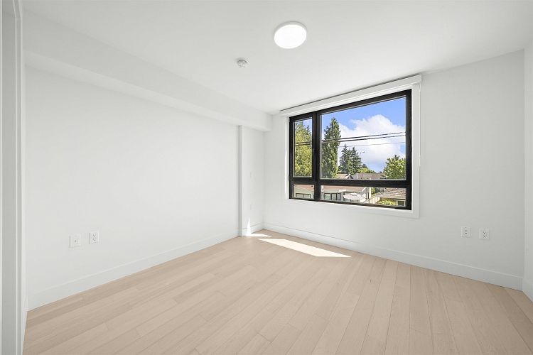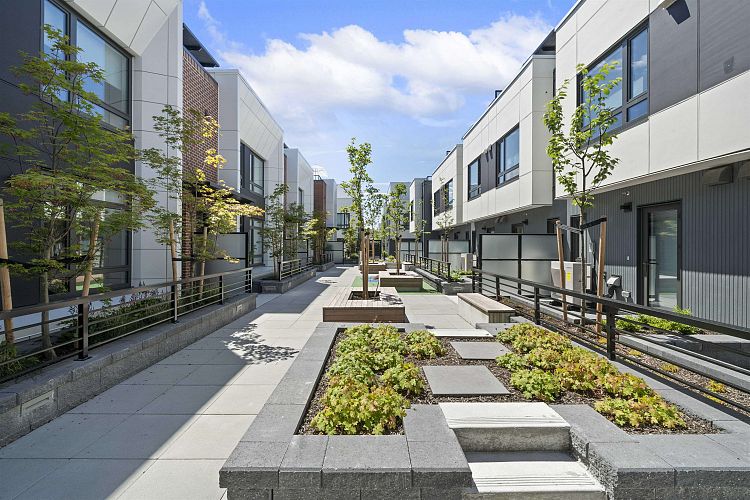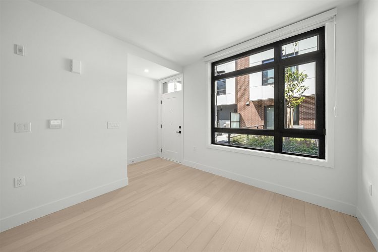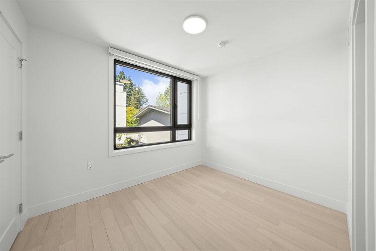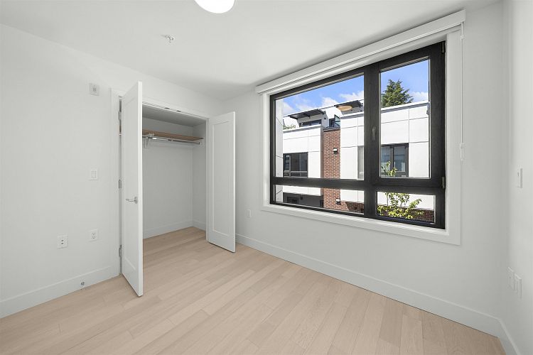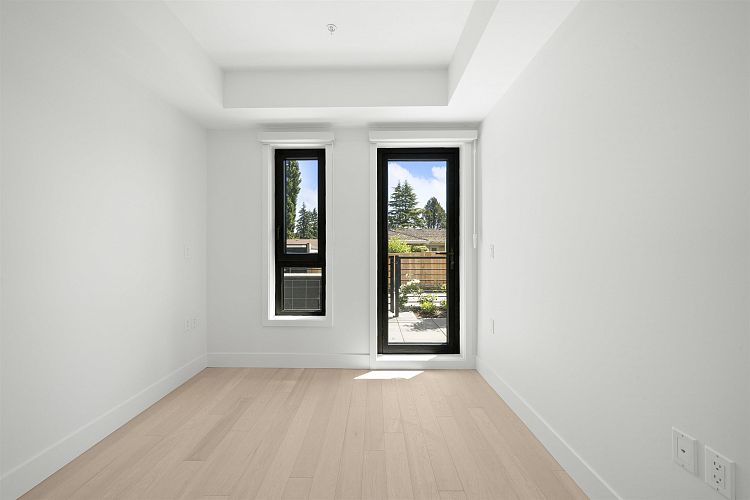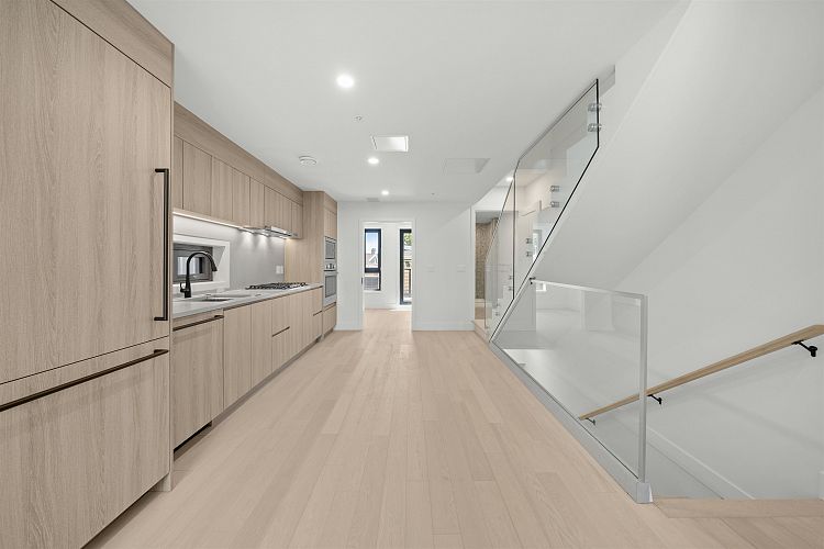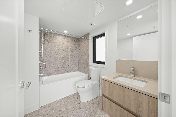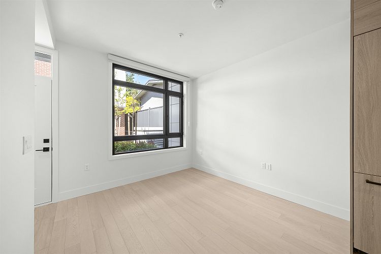 Welcome to WEST OAK by Shokai Properties — this stunning corner, east-facing townhome offers 2 Bedrooms, 3 Bathrooms + 2 Flex spaces in the heart of Oakridge. The main-floor den is large enough to serve as an additional bedroom and comes with a full bath — perfect for in-laws or guests. Enjoy entertaining on your expansive 259 sf private rooftop patio with city and neighborhood views. Designed for sophisticated living, this home features hardwood flooring throughout, fully tiled bathrooms, and a window niche in the kitchen that floods the space with natural light. Ideally located just steps from Oakridge Mall, the Canada Line SkyTrain, parks, restaurants, grocery stores, and top-rated schools — everything you need is within walking distance. 1 parking + 1 storage locker included.