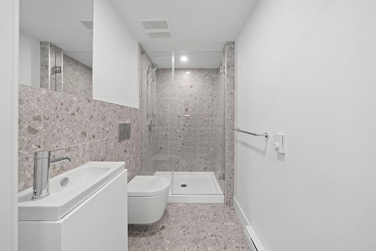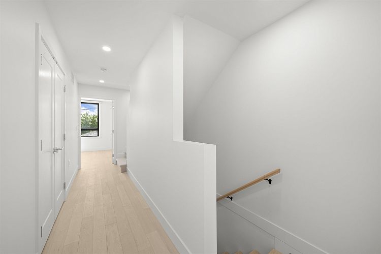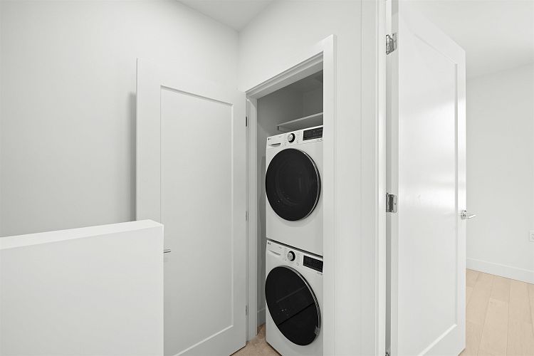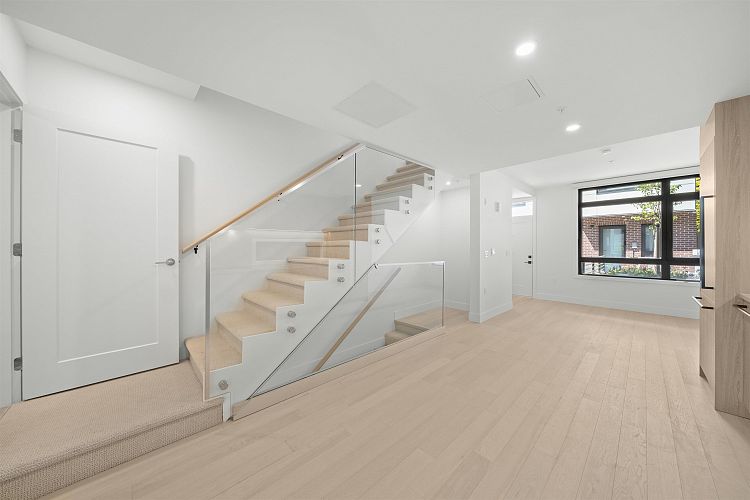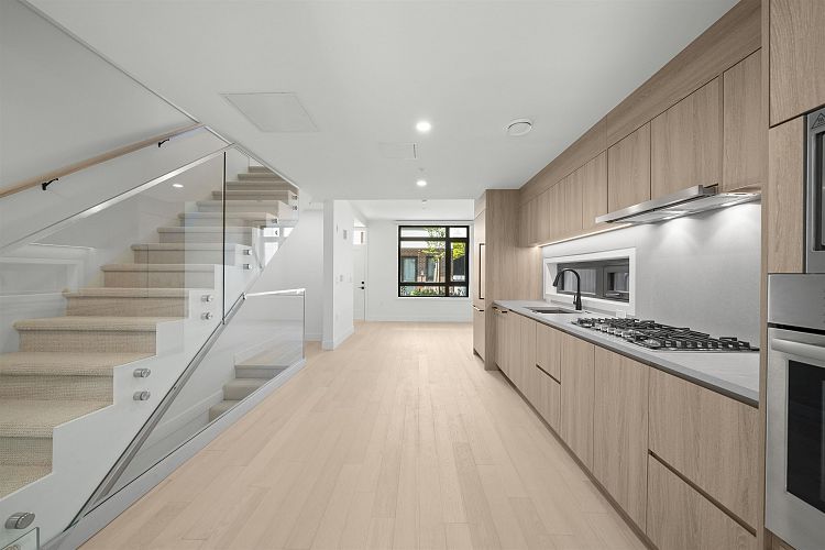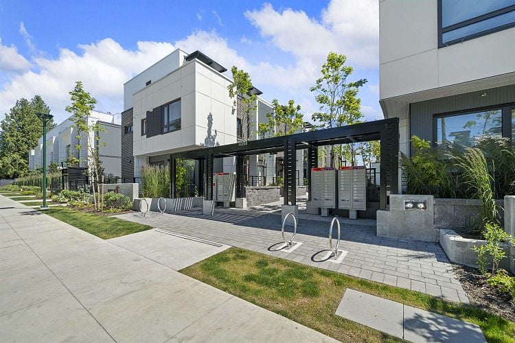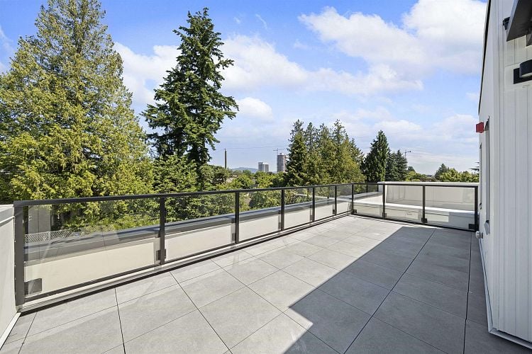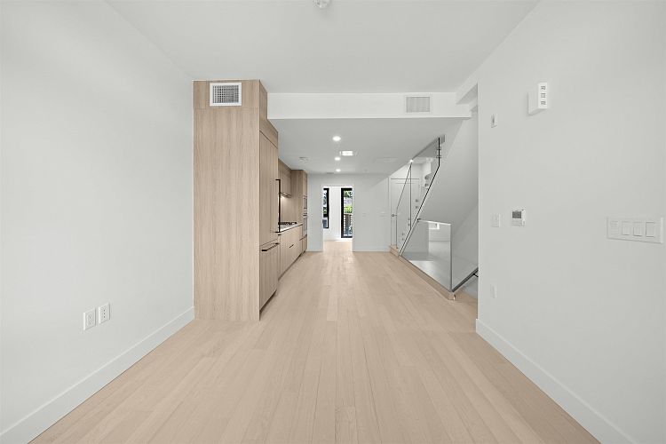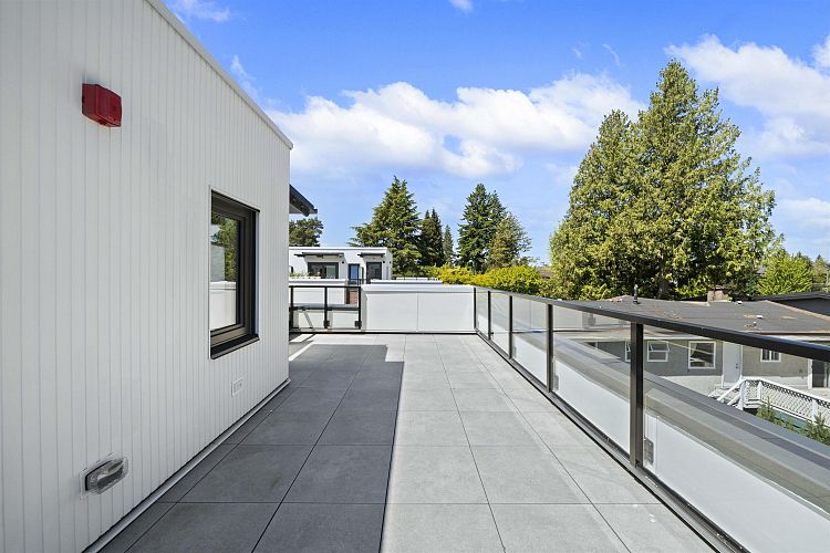 Welcome to WEST OAK by Shokai Properties — this stunning corner, east-facing townhome offers 2 Bedrooms, 3 Bathrooms + 2 Flex spaces in the heart of Oakridge. The main-floor den is large enough to serve as an additional bedroom and comes with a full bath — perfect for in-laws or guests. Enjoy entertaining on your expansive 259 sf private rooftop patio with city and neighborhood views. Designed for sophisticated living, this home features hardwood flooring throughout, fully tiled bathrooms, and a window niche in the kitchen that floods the space with natural light. Ideally located just steps from Oakridge Mall, the Canada Line SkyTrain, parks, restaurants, grocery stores, and top-rated schools — everything you need is within walking distance. 1 parking + 1 storage locker included.