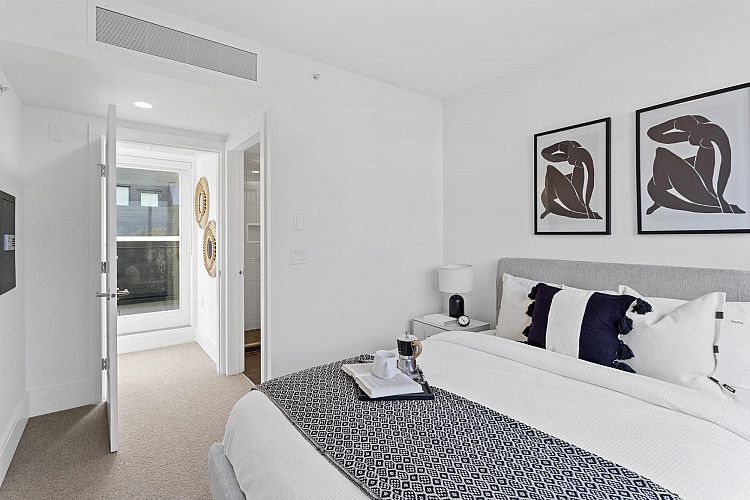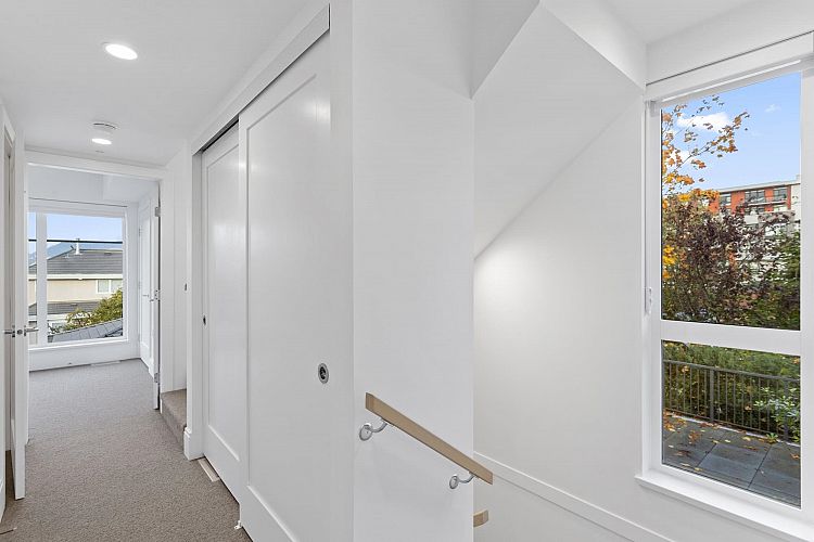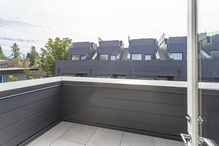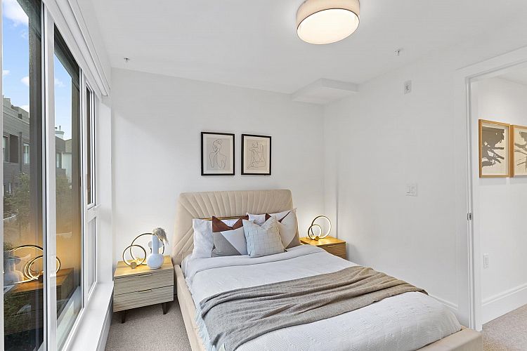 MOVE IN READY | Discover this stunning corner home — a 3-bedroom & den + flex residence at Seasons by Sightline, offering modern living on a quiet, tree-lined street. The bright and airy living area flows seamlessly into a gourmet kitchen with Miele appliances, sleek cabinetry, and an oversized island. The primary suite features an en-suite bath, walk-in closet, and a private patio with gorgeous downtown views. Two additional bedrooms, a den, and a versatile lower-level flex space provide ample living and work-from-home options. Enjoy the private patio and landscaped surroundings. Includes A/C, custom built-in cabinetry, built-in speakers, EV parking, and direct parkade access. Prime location near shopping, SkyTrain, dining, and top schools. Schedule your showing today!
