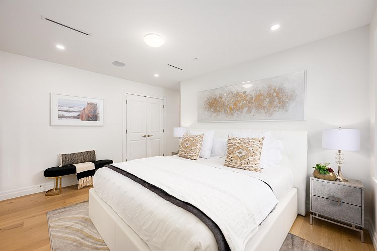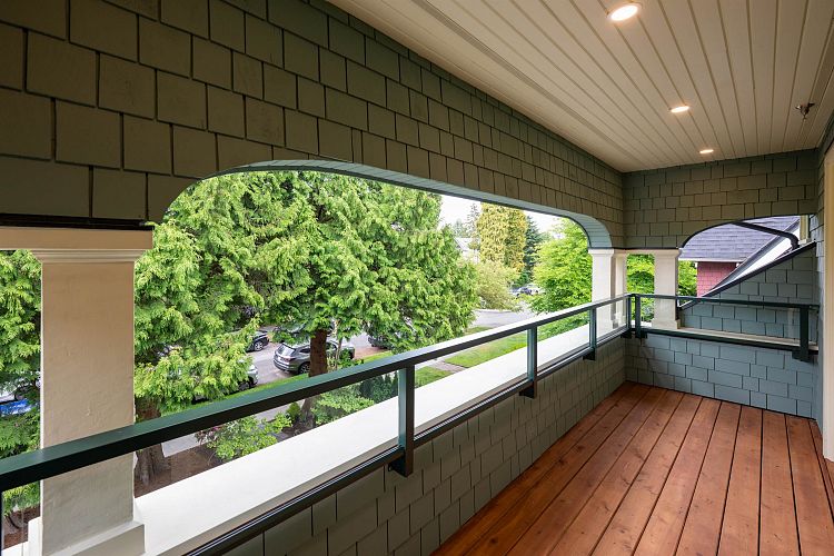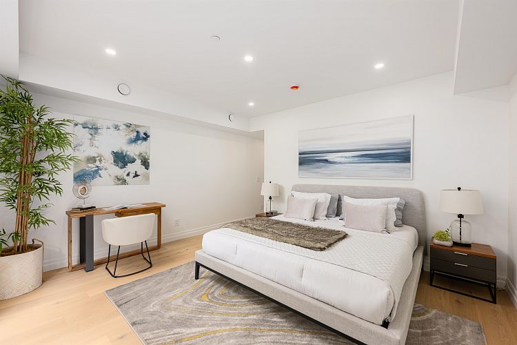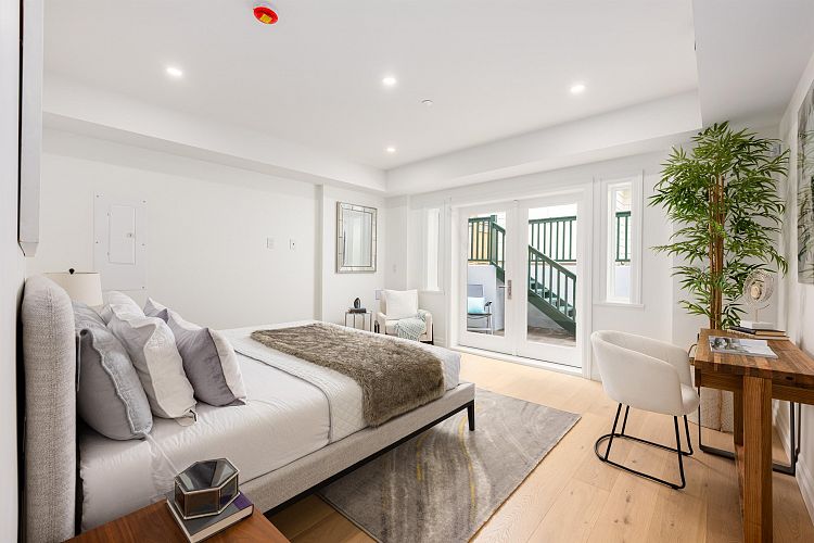 Welcome to this flagship front-facing home at the newly completed Morrison Residence. Ideally located less than a block from the Arbutus Greenway, and just steps to groceries, public transit, and every Kitsilano essential. This 1,774 sq ft brand new 3-level home blends heritage character with modern comfort, featuring a gourmet kitchen with Fisher & Paykel and Miele appliances, A/C, and a beautiful front patio perfect for entertaining. Upstairs offers 2 spacious bedrooms and 2 baths, including a luxe primary ensuite. The lower level includes a large bedroom with full bath and private entry. Enjoy a built-in sound system and smart home features with remote access to select lighting, alarm, and cameras. EV-ready covered garage, additional storage, and 2-5-10 year home warranty