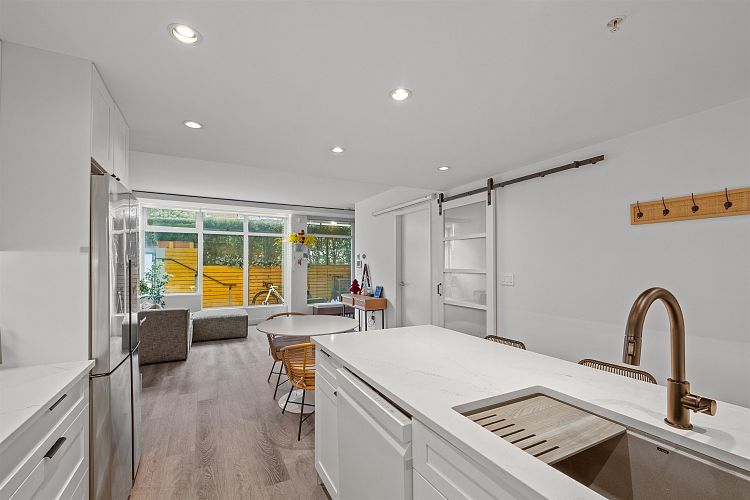 Look no further - the CONCRETE Fairview townhome that you've been waiting for has just hit the market! This elegant 2storey home offers 2beds/3baths, and has been tastefully updated with a new kitchen, new bathrooms, updated appliances & fresh paint. Enter in through the private entrance off of the 118sf patio and into an open concept lower level with a spacious living room, gourmet kitchen, eating area, ample storage & a conveniently located powder room. The upper level offers two generously sized bedrooms, two additional bathrooms, and a bright patio. The iconic '700 West 8th' building is just steps from Whole Foods, Cambie Street eats, major bus routes, Skytrain Stations, and just a short walk to Charleson Park and the beautiful False Creek seawall.