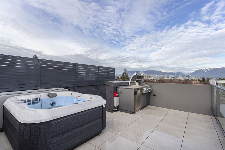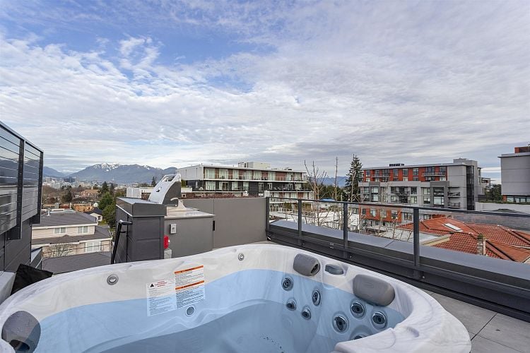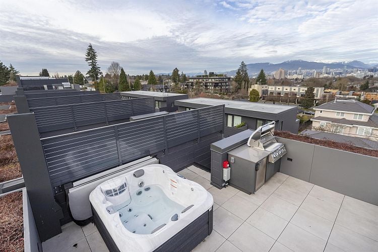 NOV 30TH OPEN HOUSE CANELLED | Step into elevated living with this corner 4-bedroom, 3-bathroom townhouse at Seasons by Sightline Properties—the final home available in this coveted community. Upgraded with $45K in premium features, the 1,701 sq.ft. layout spans four levels and features a spectacular rooftop deck with hot tub and outdoor kitchen. The main level offers a modern kitchen with Miele appliances, gas range, and sleek finishes flowing into bright living and dining areas. Upper levels include spacious bedrooms and a serene primary suite with views, and spacious walk-through closet complete with a custom built-in wall with a safe. The lower-level flex room provides added versatility. Enjoy A/C, EV-ready parking, option for a second stall, and peace-of-mind new home warranty.