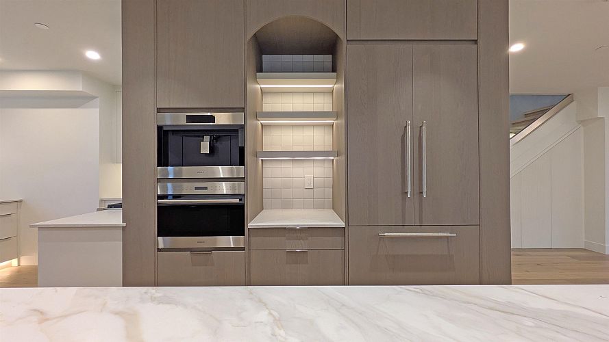 Wonderful 2-level townhome in Shaughnessy nearly 1900 sq ft by Four Corners Homes. Open plan main floor with large windows and exceptional lighting solutions. Well thought out working kitchen with Wolf gas range and Wolf built-in coffeemaker. Fisher Paykell fridge and dishwasher. Large island, wide plank oak floors, 9' ceilings make for a great entertaining space. 3 beds up and 2 full bathrooms. Primary features a cozy alcove with built-ins plus built closets in all bedrooms. 2/5/10 new home warranty, AC, security with cameras, single car garage + outdoor bike storage lockers. This is a fabulous location in the centre of the city. Shaughnessy Elementary and Eric Hamber school catchments. THIS IS UNBEATABLE VALUE!!