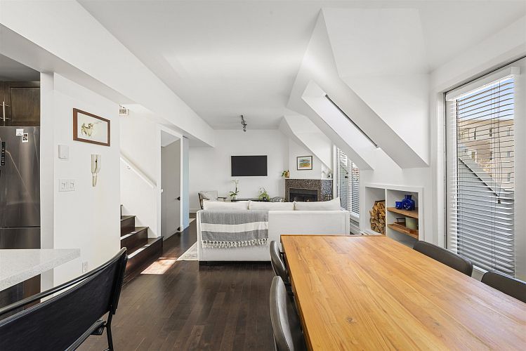 Located in the boutique Yorkville Mews, this 2-bedroom, 2-bathroom concrete frame townhome offers exceptional space, light, and livability in one of the most desirable locations in the city. With 1,385 sq ft of interior living, the home features a well-designed layout with over-height and vaulted ceilings, a wood-burning fireplace, and abundant natural light. The expansive private rooftop patio provides an ideal outdoor extension for relaxing or entertaining. A key feature of the home is the exceptionally large primary bedroom, complete with walk-through closets and a spa-inspired ensuite featuring a soaker tub and separate shower. A proactive, and well-managed strata this is Kitsilano living at its best just steps to the beach and some of the best restaurants and cafes in Vancouver.