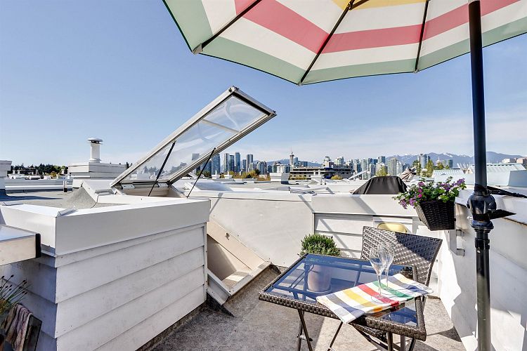 Rarely available 2 bedroom, 2 bath south-facing end townhome in the highly coveted gated complex - THE IVY'S! This residence boasts one of the largest floor plans in the community and offers a unique street address that feels like a detached home in Fairview! Fully renovated bathrooms and kitchen, alongside updates to the entrance and new blinds. Enjoy a spacious, bright living area with a gas fireplace. Ample storage is provided, including large closets, a walk-in pantry, and a storage locker. The Rooftop Deck showcases stunning mountain and city views. Unbeatable Location, just 2 minutes to Canada Line, Whole Foods, and Cambie amenities. Parks, the seawall, and restaurants are just around the corner. Includes 1 parking space & pets allowed.