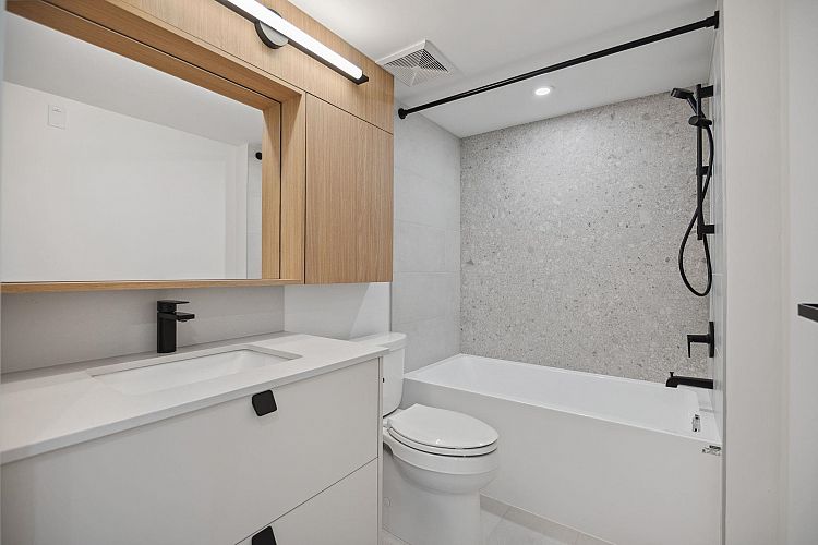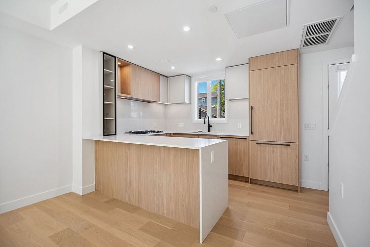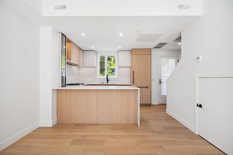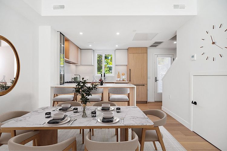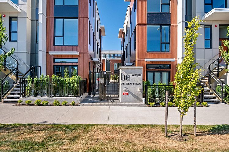Be W 49th by Modella Developments is a collection of 17 newly built move-in ready 2 and 3-bedroom homes located in Vancouver's prestigious West Side. Tucked into a community of single-family residences, Be W 49th offers the security of neighbourhood living with the accessibility of city amenities and rapid transit, just beyond your doorstep! This inside 3-level townhome features 3 beds and 2.5 baths with engineered oak floors throughout. Culinary kitchens include full size Gaggenau appliances and plenty of open and closed kitchen storage. Entertain on large front and back garden patios and step out onto private balcony from primary bedroom. Includes 1 EV ready parking and storage locker. Open house Sat Feb 7, 2-4PM.