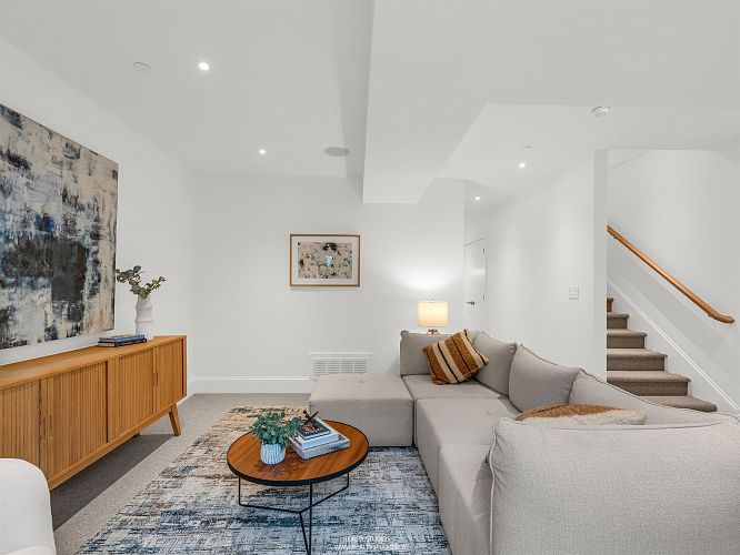 Welcome to a beautifully crafted 3-level townhome at The Residences on the Greenway, a boutique collection of just four homes in prestigious Shaughnessy. Developed by Clearwater Development Group in partnership with Lyndan Properties, this elegant character conversion offers a refined main level with open living/dining, a designer Fisher & Paykel kitchen, and powder room. Upstairs features a primary bedroom with ensuite plus a second bedroom and ensuite. The lower level includes a rec room, third bedroom, full bath, and private patio. Enjoy your own irrigated garden space, secure EV-ready garage, and timeless interiors with custom millwork, stone fireplace, and oak flooring.