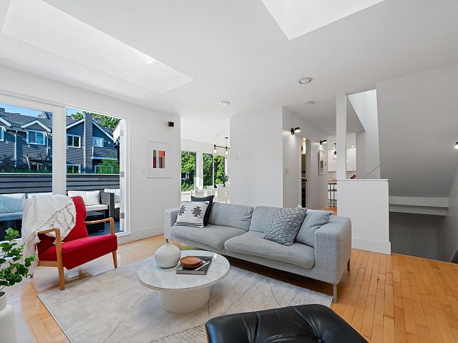 This beautifully appointed 1,800+ sq. ft. triplex offers 3 bedrooms and 3 bathrooms and is truly exceptional. Enjoy abundant natural light, high ceilings, and quality upgrades throughout. The upper level is perfectly suited for a home office or recreation space, while the main floor features an impressive kitchen and dining area that opens to a comfortable family room—ideal for everyday living and entertaining. The thoughtfully designed layout provides excellent separation across floors, making it ideal for families and modern living. Just a 5-minute walk to Kitsilano Secondary, 2 minutes to Whole Foods, and a 15-minute stroll to the beach, this location truly can’t be beat. LIVE in the HEART of Kitsilano!