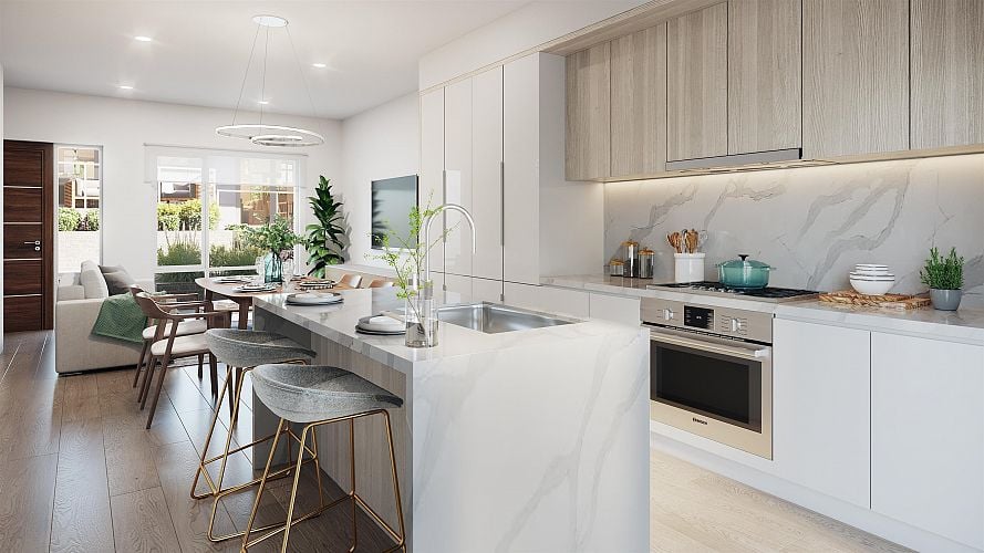 Welcome to West58, a dynamic collection of 23 spacious townhomes designed for elevated West Side living. This 1 Bedroom + Flex home features 9' ceilings on the main level, a thoughtfully designed kitchen with Bosch cooktop, wall oven, and dishwasher, polished quartz countertops, wide-plank hardwood flooring, and elegant sheer + privacy window coverings. Surrounded by parks, green space, and top-tier schools, West58 offers a rare opportunity in a prime South Granville location. Developed by Azora, a well-known and trusted developer in Vancouver, delivering quality craftsmanship and thoughtful design. Multiple floor plans available. Presentation Centre & Showings by Appointment: 2152 W 41st Ave, Vancouver