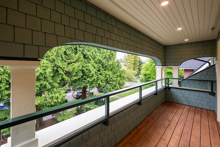 Welcome to this flagship front-facing home at the newly completed Morrison Residence. This 1,774 sqft brand new 3 bedroom home blends heritage character with modern comfort, featuring a gourmet kitchen with Fisher & Paykel and Miele appliances, A/C. A beautiful private front porch extends your living space. Ideally located less than a block from the Arbutus Greenway, and just steps to groceries, public transit, and every Kitsilano essential. Upstairs offers 2 spacious bedrooms and 2 baths, including a luxe primary ensuite. The lower level includes a large bedroom with full bath and private entry. Enjoy a built-in sound system and smart home features with remote access to select lighting, alarm, and cameras. EV-ready covered garage, additional storage, and 2-5-10 year home warranty