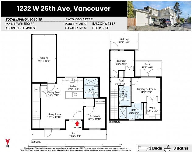 Wake up to natural light in this rare, true 3 bed + 3 bath two-level coach home with attached garage (flexible den) in prestigious Shaughnessy. Ideal for growing families or buyers moving from Yaletown or East Side townhomes, this 1,080 sq ft home offers smart separation of living and sleeping areas. Set within Shaughnessy’s historic landscape, originally shaped by Frederick Todd and L.E. Davick, designers of New York’s Central Park, it is steps to Devonshire Park and close to York House, top public schools, and BC Children’s Hospital. Enclosed garage, under-stair storage, 2 south-facing decks, radiant heat, AC, EV-ready parking, quartz counters, and spa-inspired baths complete the home. High-efficiency boiler, roller blinds, full alarm. Open House: April 18th Sat 3-5PM, 19th Sun 12-2 PM.